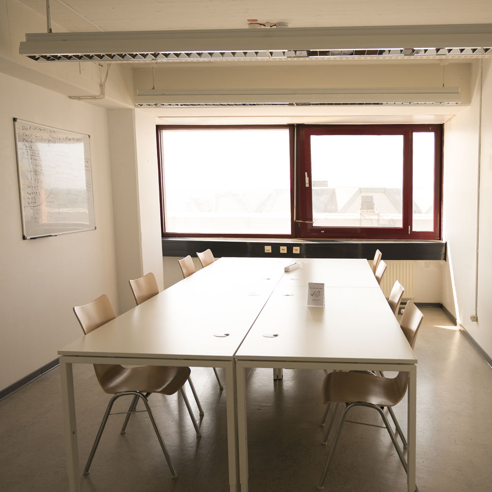 There are three group study rooms on the ground floor (rooms 03, 07 and 08) with several study areas that you can book individually. The study areas are set up for groups of 4 to 8 people, some are equipped with a large wall-mounted flat screen.